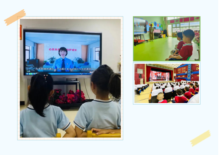 该院检察干警走进辖区内幼儿园,利用线上播放视频,线下走入课堂的模式,向学龄前儿童进行双语安全教育与普法宣传,护航小朋友们的快乐假期。