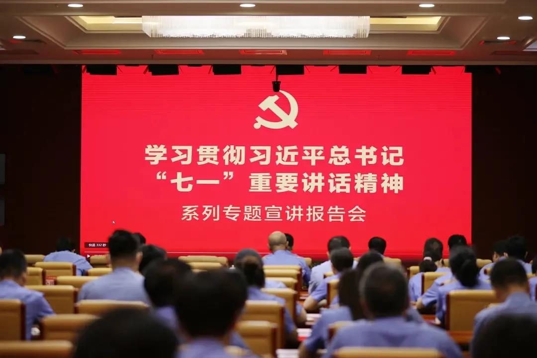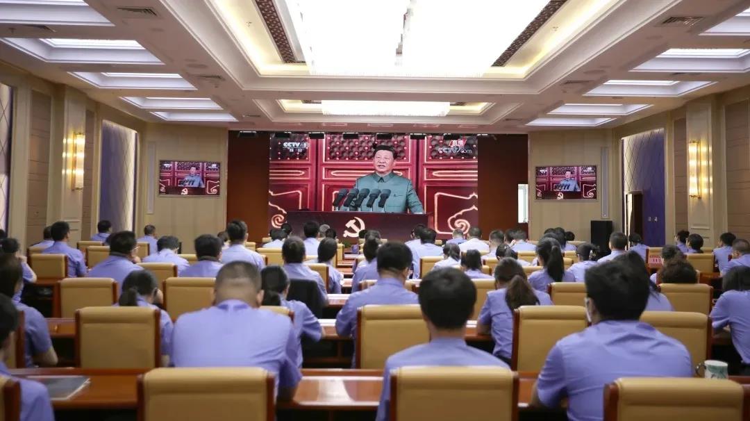 组织全体干警集中观看庆祝中国共产党成立100周年大会,聆听习近平总书记在大会上的重要讲话。召开党组理论中心组专题学习研讨会,学习习近平总书记“七一”重要讲话、人民日报评论员文章,谈感悟、分享收获。