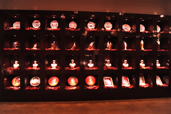 (PS:展柜第二层展示的是6个一组的《白毛女》瓷塑,芭蕾舞剧《白毛女》是当时八大样板戏之一。据收藏者讲,二十多年来,全国仅存此一组《白毛女》瓷塑。