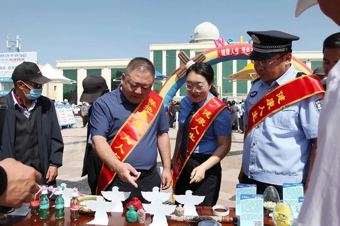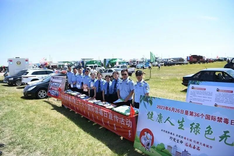近日,在新巴尔虎左旗草原那达慕暨蒙古马耐力赛现场,新巴尔虎左旗检察院与当地公安局联合开展禁毒宣传活动。