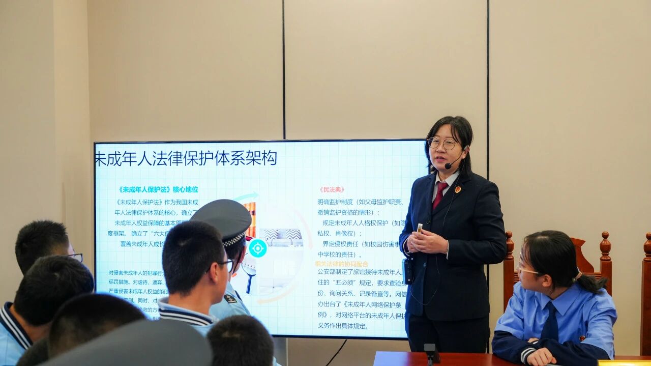 “同学们,知道宪法赋予我们未成年人哪些特殊保护吗?”“当遇到校园欺凌时,宪法如何为我们撑腰?”检察人员以趣味问答拉开序幕,围绕宪法中未成年人权益保护的核心条款抛出问题,同学们踊跃举手、各抒己见。检察人员结合《中华人民共和国未成年人保护法》《中华人民共和国预防未成年人犯罪法》,通过“案例剖析+情景模拟”的形式,用贴近校园生活的真实案例解读法律条文,重点讲解校园欺凌、网络诈骗、交通安全等。在知识竞赛区,同学们有序分成四组,开始“知识大闯关”,大家紧盯屏幕、快速应答,现场掌声与欢呼声此起彼伏,将学习氛围推向高潮。