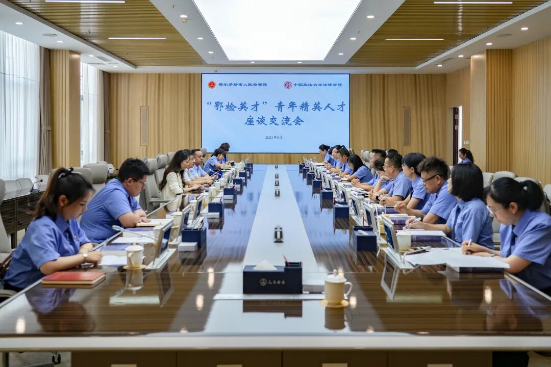 2025年8月15日,中国政法大学法律学院院长许身健再次来到鄂尔多斯市检察院开展专题授课,并和“鄂检英才”青年精英人才代表就疑难案例、法律前沿问题、职业发展路径等开展座谈交流。