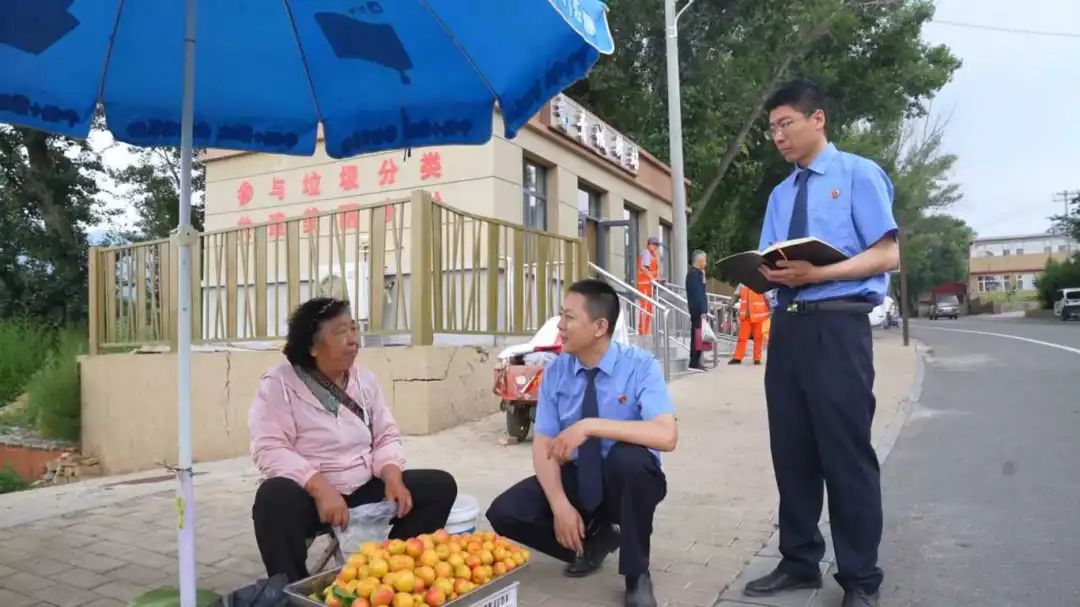 图为检察官日前开展“回头看”,向乌素图杏种植户、销售者了解情况。