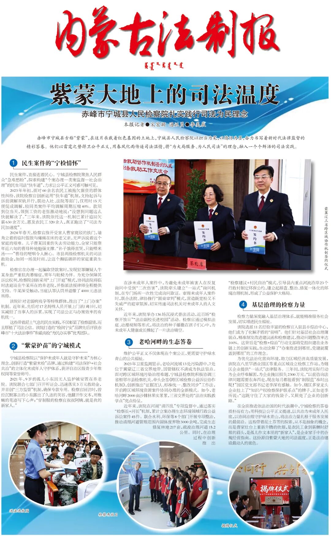 赤峰市宁城县古称“紫蒙”,在这片承载着红色基因的土地上,宁城县检察院以担当为笔,以情怀为墨,奋力书写着新时代法律监督的精彩答卷。他们以雷霆之势捍卫公平正义,用春风化雨传递司法温情,将“为大局服务、为人民司法”的理念,融入一个个鲜活的司法实践。