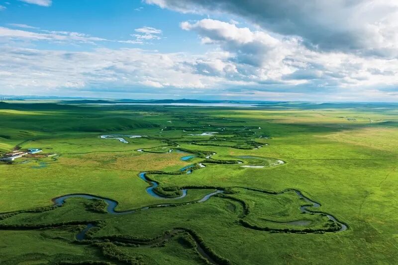 航拍内蒙古乌拉盖草原乌拉盖河九曲弯(视觉中国 供图)