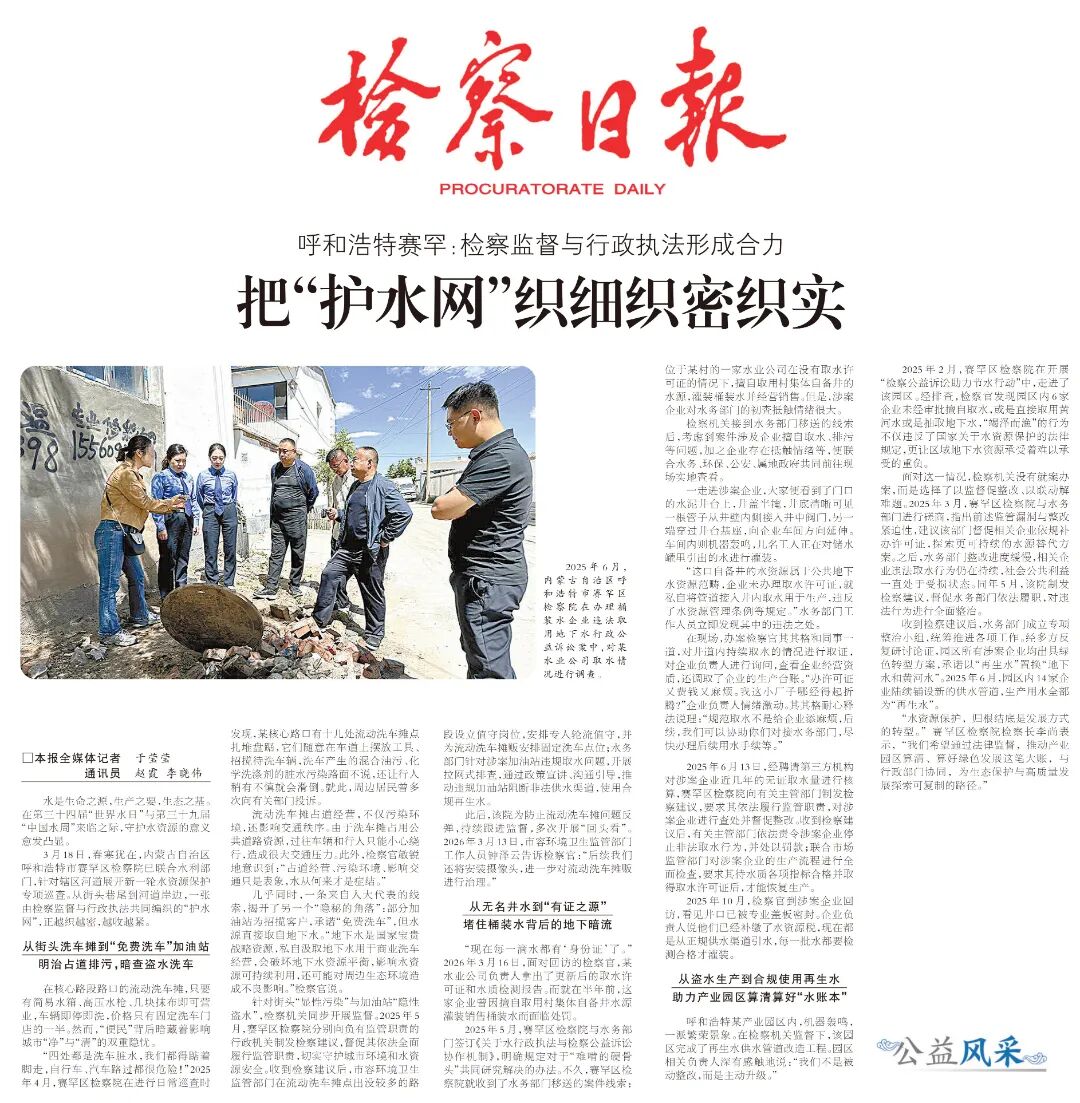3月18日,春寒犹在,内蒙古自治区呼和浩特市赛罕区检察院已联合水利部门,针对辖区河道展开新一轮水资源保护专项巡查。从街头巷尾到河道岸边,一张由检察监督与行政执法共同编织的“护水网”,正越织越密,越收越紧。