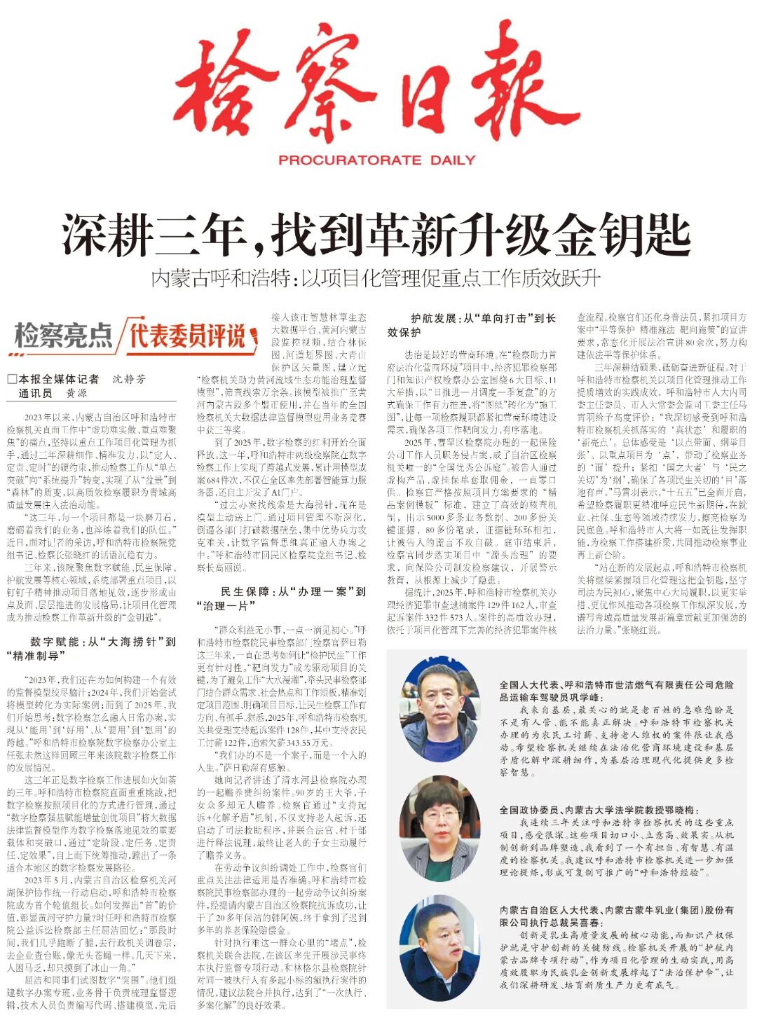 我连续三年关注呼和浩特市检察机关的这些重点项目,感受很深。这些项目切口小、立意高、效果实。从机制创新到品牌塑造,我看到了一个有担当、有智慧、有温度的检察机关。我建议呼和浩特市检察机关进一步加强理论提炼,形成可复制可推广的“呼和浩特经验”。