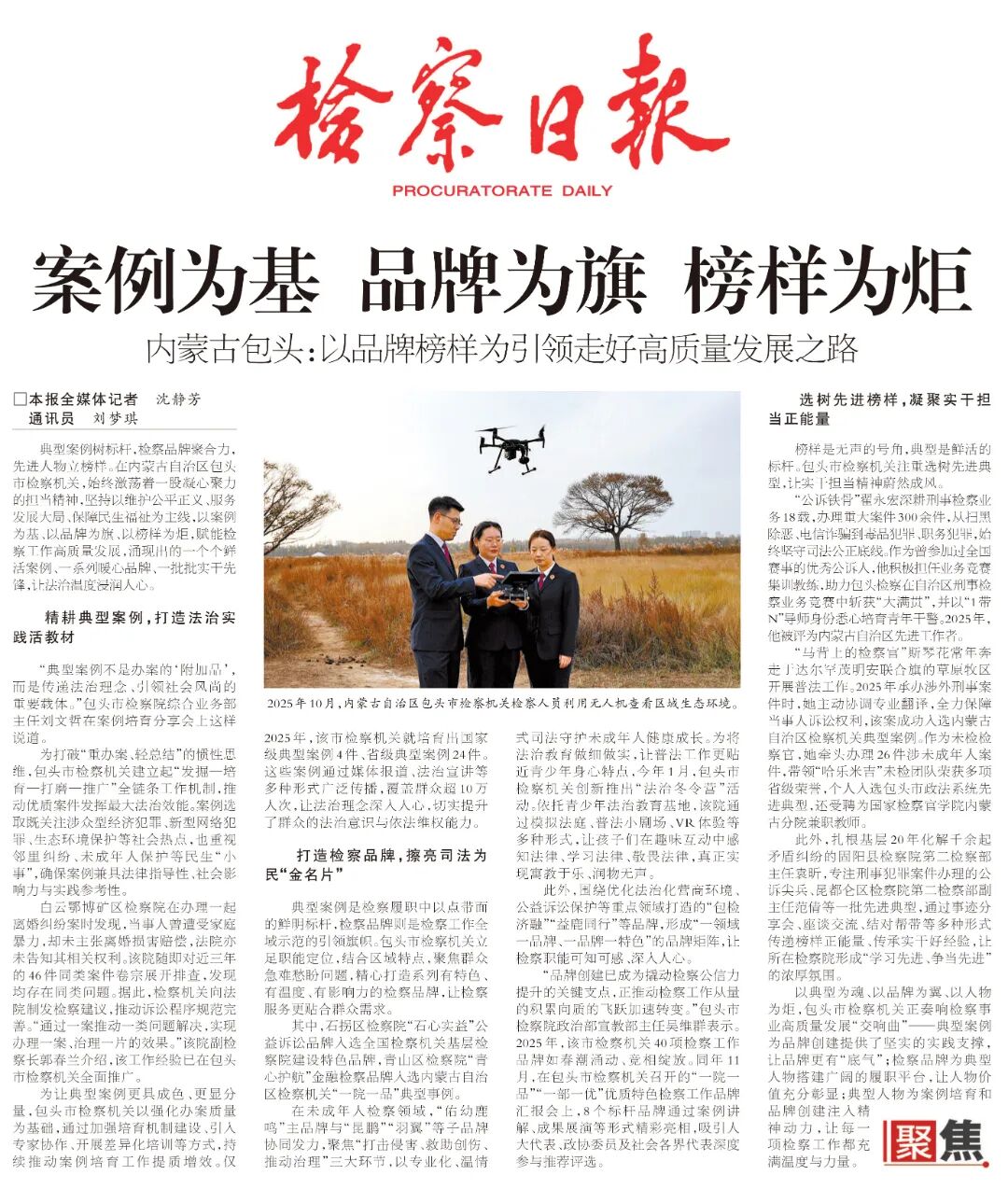 以典型为魂、以品牌为翼、以人物为炬,包头市检察机关正奏响检察事业高质量发展“交响曲”——典型案例为品牌创建提供了坚实的实践支撑,让品牌更有“底气”;检察品牌为典型人物搭建广阔的履职平台,让人物价值充分彰显;典型人物为案例培育和品牌创建注入精神动力,让每一项检察工作都充满温度与力量。