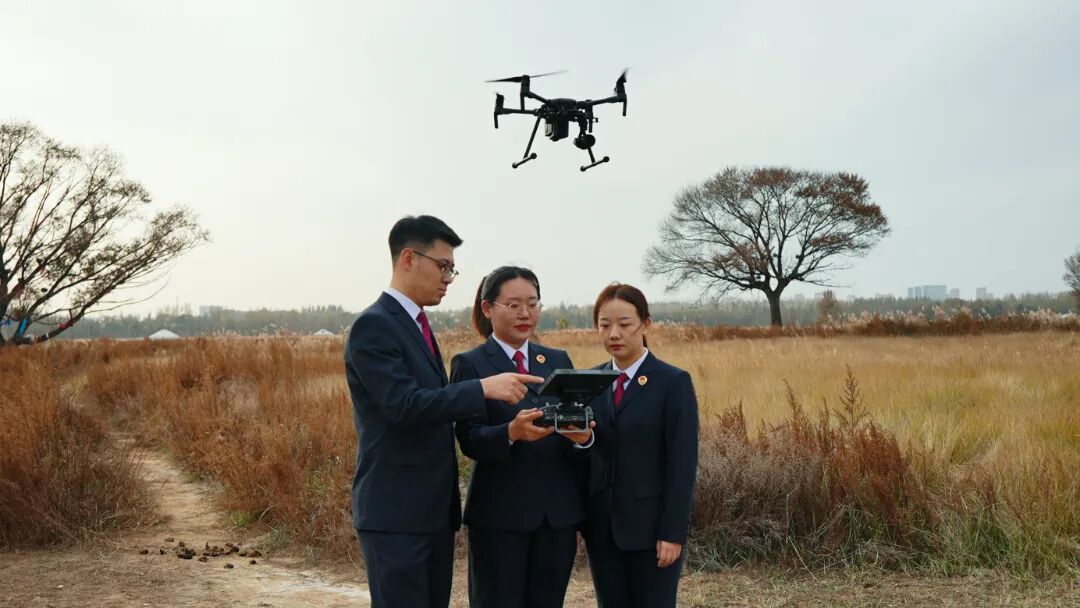 2025年10月,内蒙古自治区包头市检察机关检察人员利用无人机查看区域生态环境。