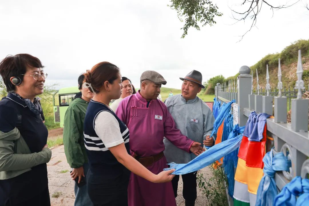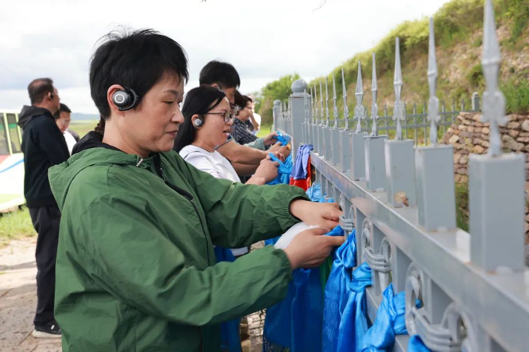“系上蓝色哈达,希望古树长青。” 7月15日下午,在元上都遗址古树保护案现场,杨山红代表按照提示牌于指定围栏区域系上哈达,为百年古树祈福,其他代表也纷纷送上祝福。