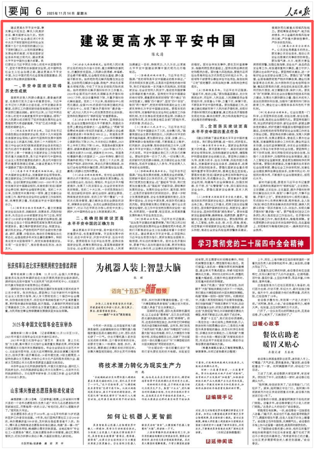 《建议》明确了建设更高水平平安中国的重点任务。我们要全面把握,逐一细化,抓好落实。