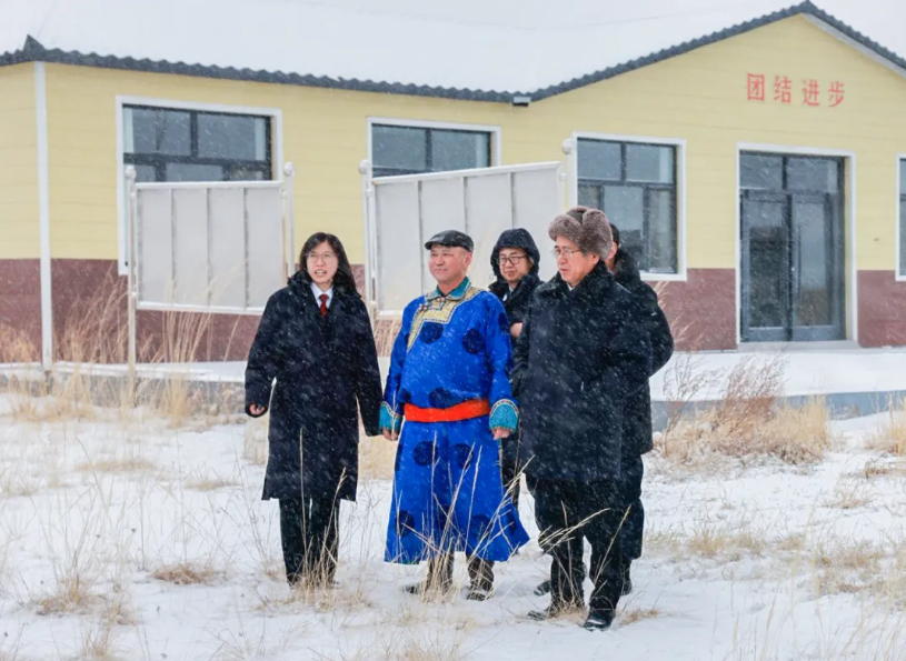 瑞雪纷飞,寒意逼人,乌珠穆沁草原银装素裹。全国人大代表额尔敦达来的家在东乌珠穆沁旗嘎达布其镇尚都嘎查,距中蒙边界珠恩嘎达布其口岸仅十公里。李永君专程来到这里走访看望。