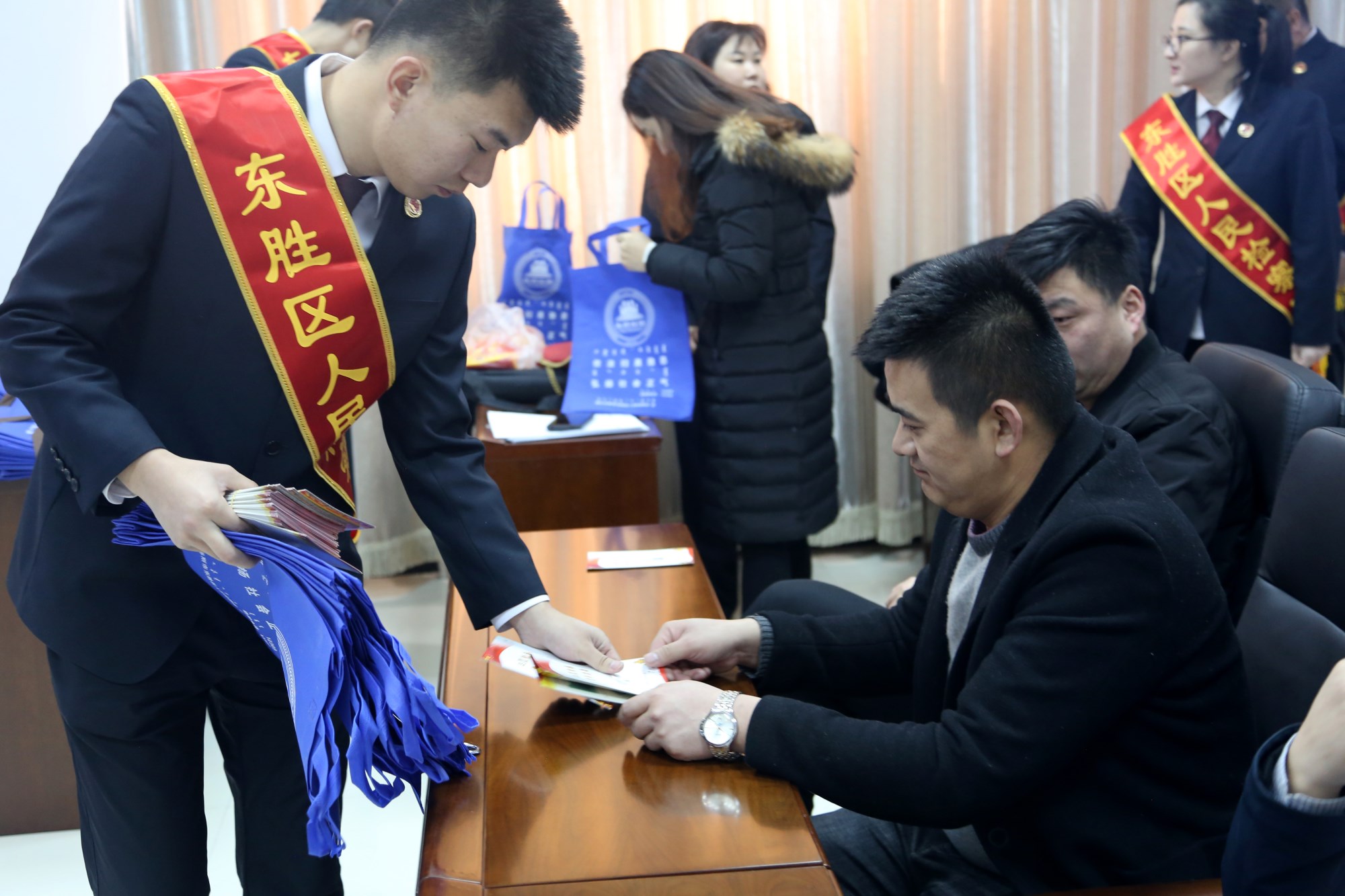 为进一步动员人民群众积极参与扫黑除恶专项斗争,检举揭发黑恶势力犯罪及“保护伞”线索,不断扩大正面宣传声势,推动扫黑除恶专项斗争向纵深发展,鄂尔多斯市东胜区检察院于1月21日上午10点在罕台镇司法所举行了“发挥检察职能 严惩黑恶犯罪”宣传周的启动仪式并组织刑事检察部、刑事执行检察部、基层巡回检察室等部门的10余名干警,通过专题讲座、现场答疑、发放宣传资料等形式,为泊江海子镇司法所和罕台镇司法所管理的社区矫正人员和部分群众普及扫黑除恶专项斗争相关知识,坚持打击、宣传、普法同频共振,确保群众在强大舆论声势中明法理、受教育、增信心。讲座完毕后,工作人员给社区矫正人员和群众发放了涉黑涉恶线索排查表和调查问卷,并公布了举报方式,鼓励群众积极参与扫黑除恶专项斗争。